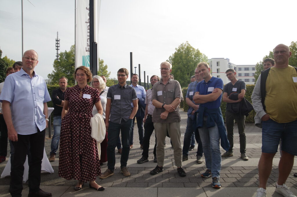 Die Kolleginnen und Kollegen vom Fraunhofer MEOS, eines unserer jüngsten Mitglieder, öffneten ihre Türen und gaben einen Einblick in die neu geschaffenen F&E-Möglichkeiten in Erfurt-Südost. Dr. Michael Scholles (Zentrumsleiter) führte interessierte Gäste durch die Labore, in denen die Wissenschaftlerinnen und Wissenschaftler zahlreiche Fragen zu den aktuellen Forschungsprojekten beantworteten.